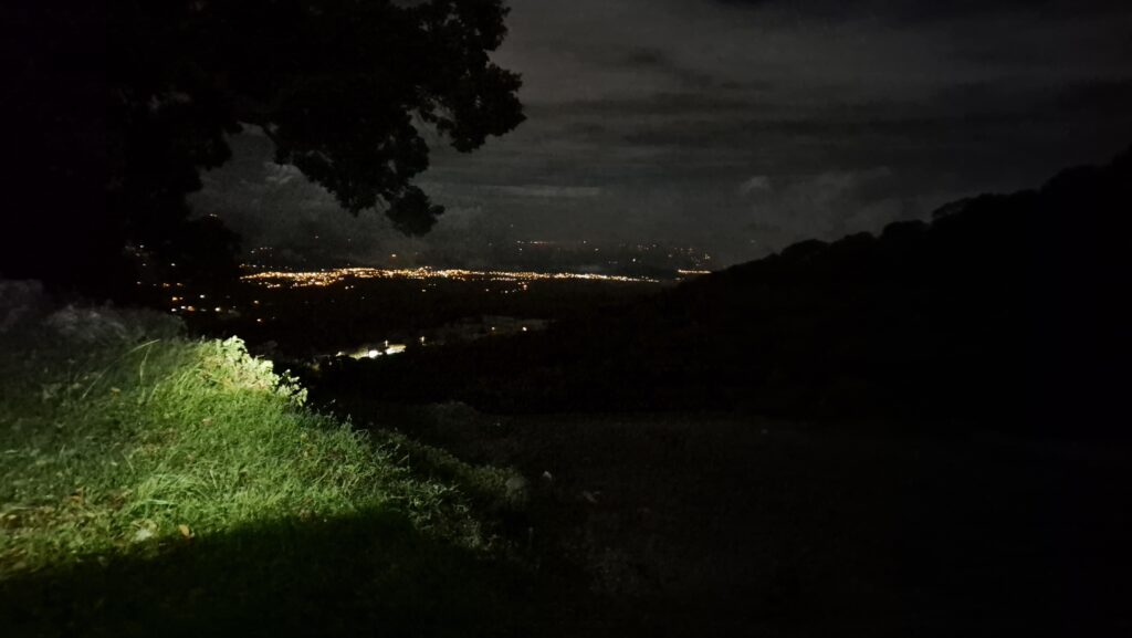 At this point we started the hike proper. We were lucky that we had a full moon so it wasn’t as pitch black as it could have been, and cloud cover meant that even at 1,800m altitude it was warm and we were all quickly stripping off layers of clothing.